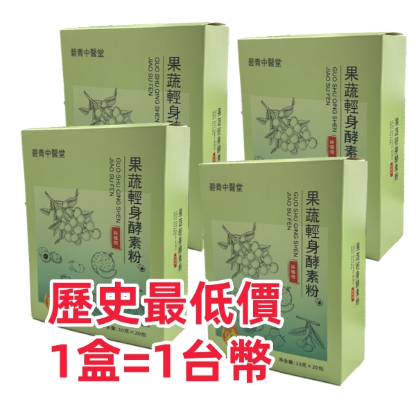 5分鐘前【 曆史最低價1盒僅需1台幣】-碧青中醫堂果蔬輕身酵素粉-健康再升級!<一盒瘦4公斤> 可燃燒脂肪、可降血壓、穩定血糖、抗衰老 【專為亚洲人減重】 - 共6盒【暴瘦15-20公斤】限量299組!!-僅需 NT$1980